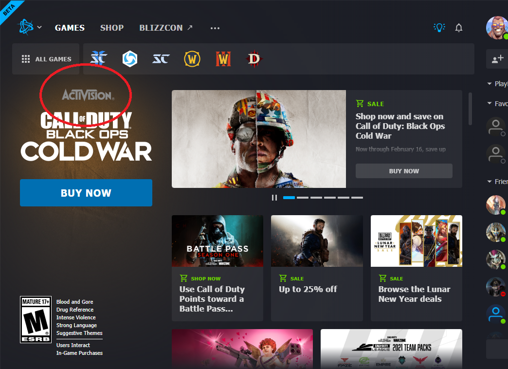 Bliz’s only involvement in the CoD games is getting it onto your computer, i.e. installing and patching. Once those are successfully completed, all support responsibility is then transferred to the company that made the game: Activision.