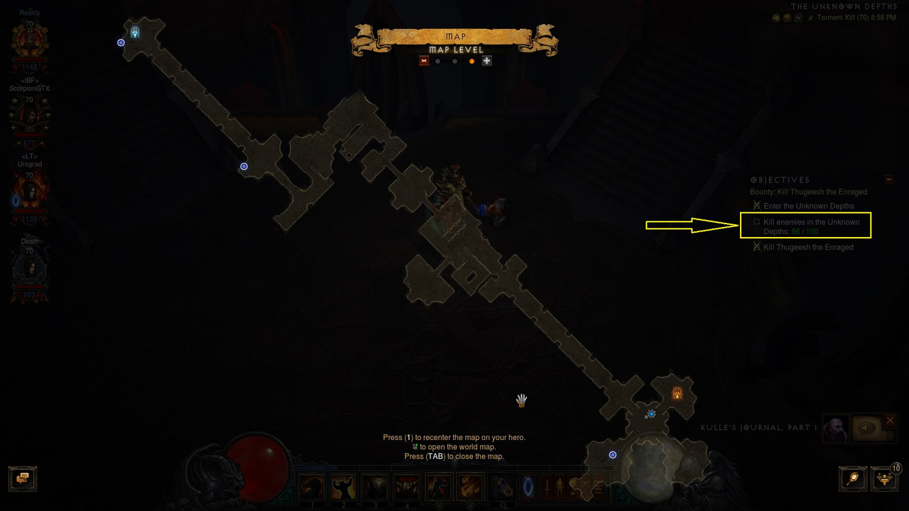 Kind of random, but the Bounty “Kill Thugeesh the Enraged” which takes place in the Unknown Depths in Act 2, the four of us scoured every pathable space and were unable to reach the 100 kils.