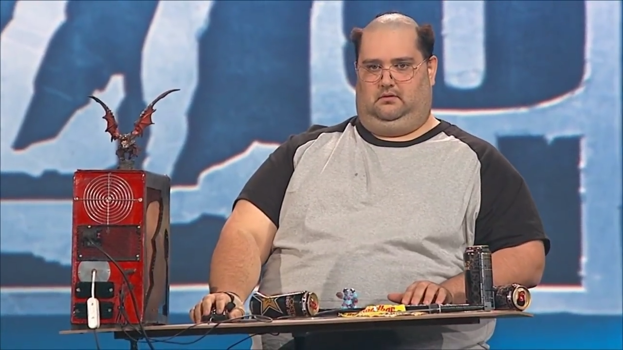 I was at this Blizzcon, I think it was my first Blizzcon IIRC. He came out wheeling an entire desk setup.