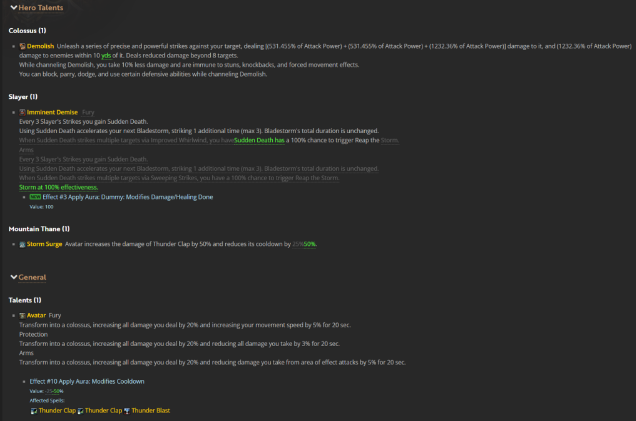 We’re likely to see ST buffs to Warriors post 12.0.5 release though given both specs are lacking a bit in that front and Slayer Arms does take a little hit with it’s MS no longer proccing Reap in ST which the Mortal Wounds change may offset slightly but would still be in a position likely needing some buffs for both specs and their builds.