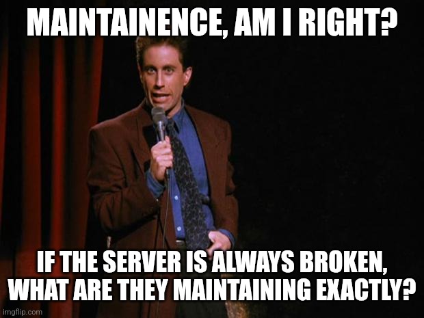 Server maintenance on Tues, Wed, and Fri now?