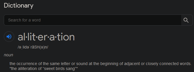 Well aware of the meaning of alliteration. I went to school lol