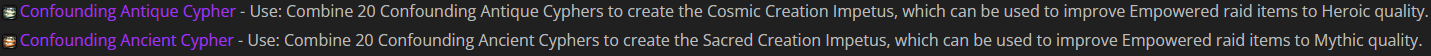 The point is, NOTHING is for Mythic raiders. Normal gets to upgrade to Heroic, Heroic gets to upgrade to Mythic, Mythic… gets nothing.